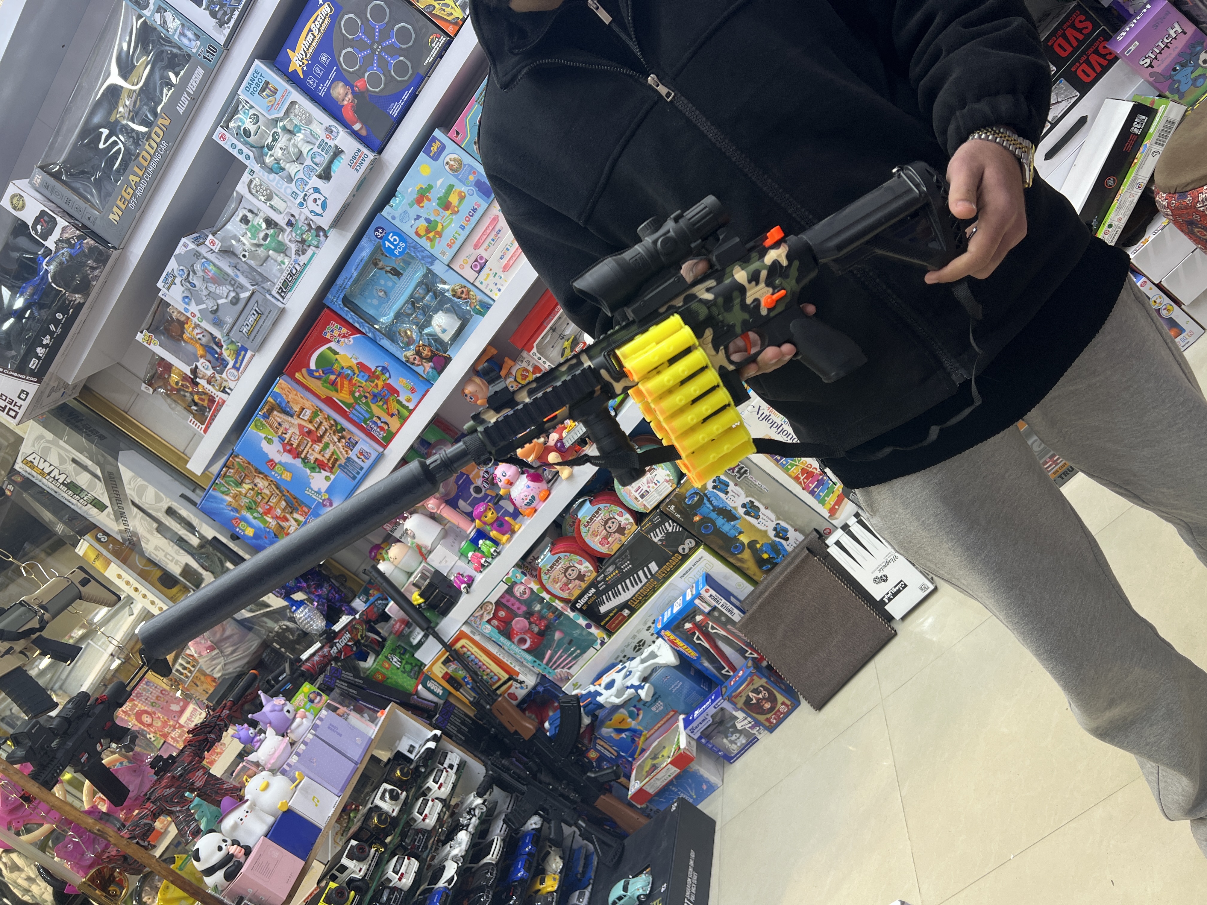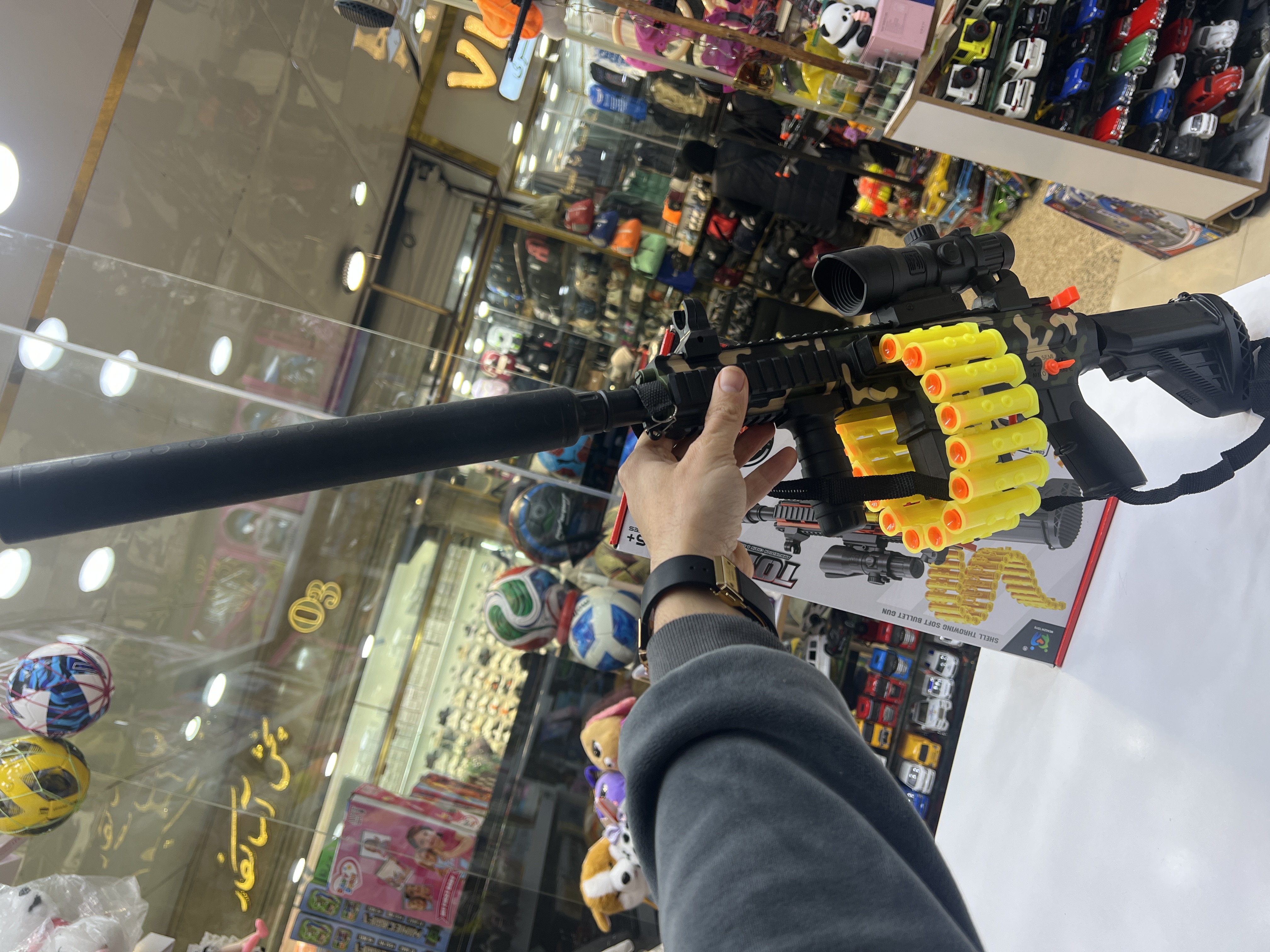 تفنگ m416 تیر اسفنجی شارژی دو حالته رگبار و تکی دوربین دار دارای بند آویز باطری دوصل