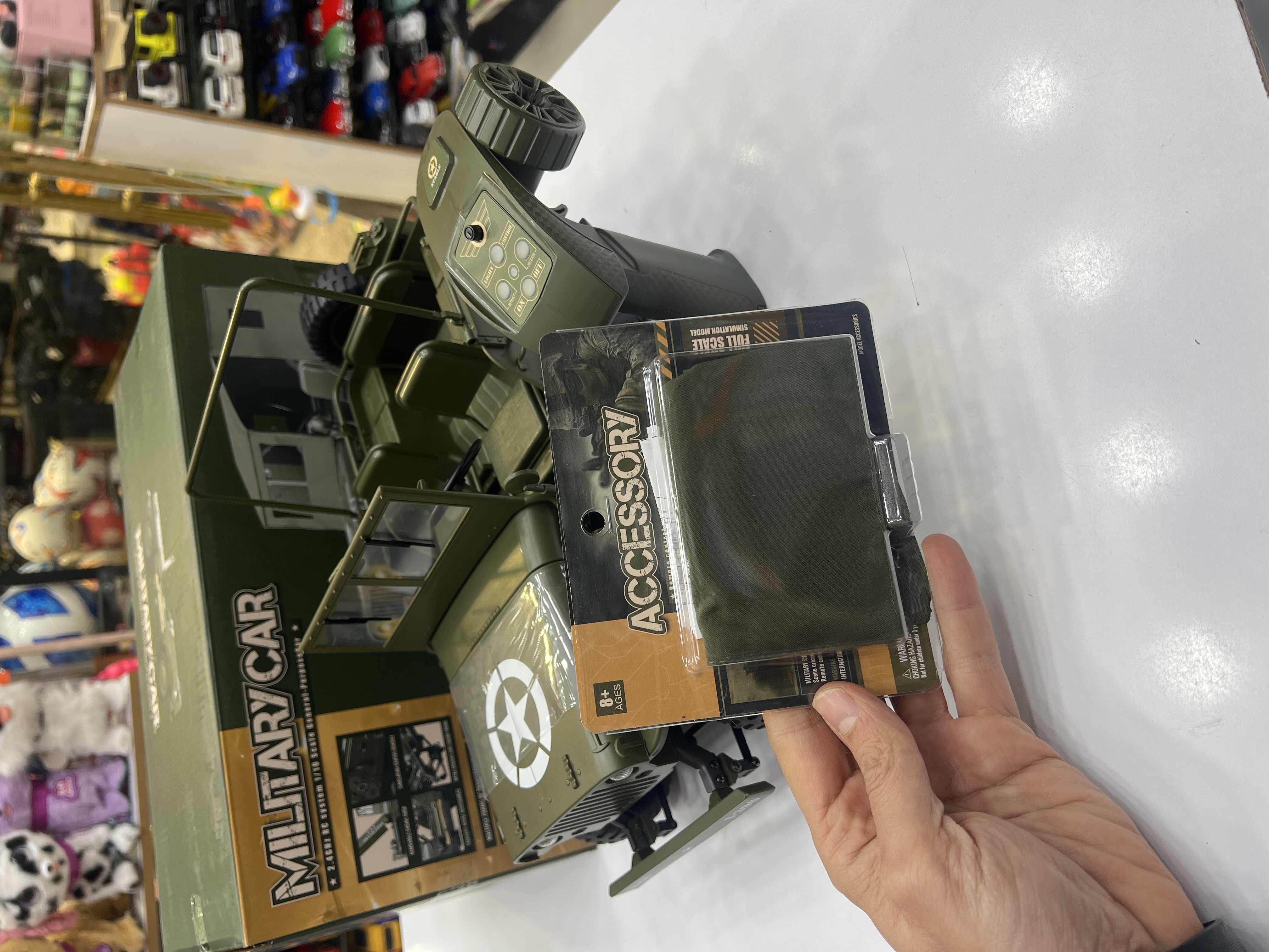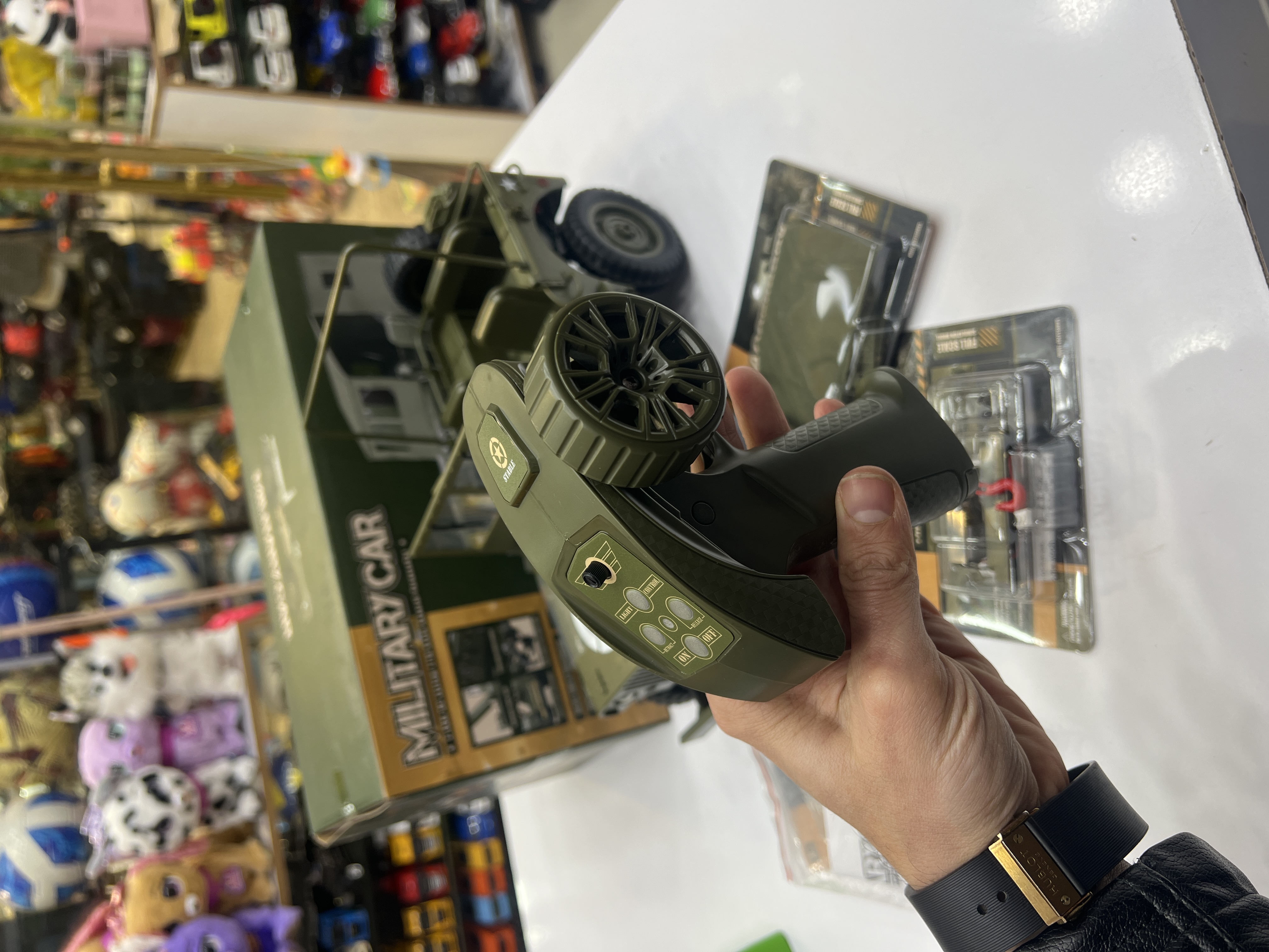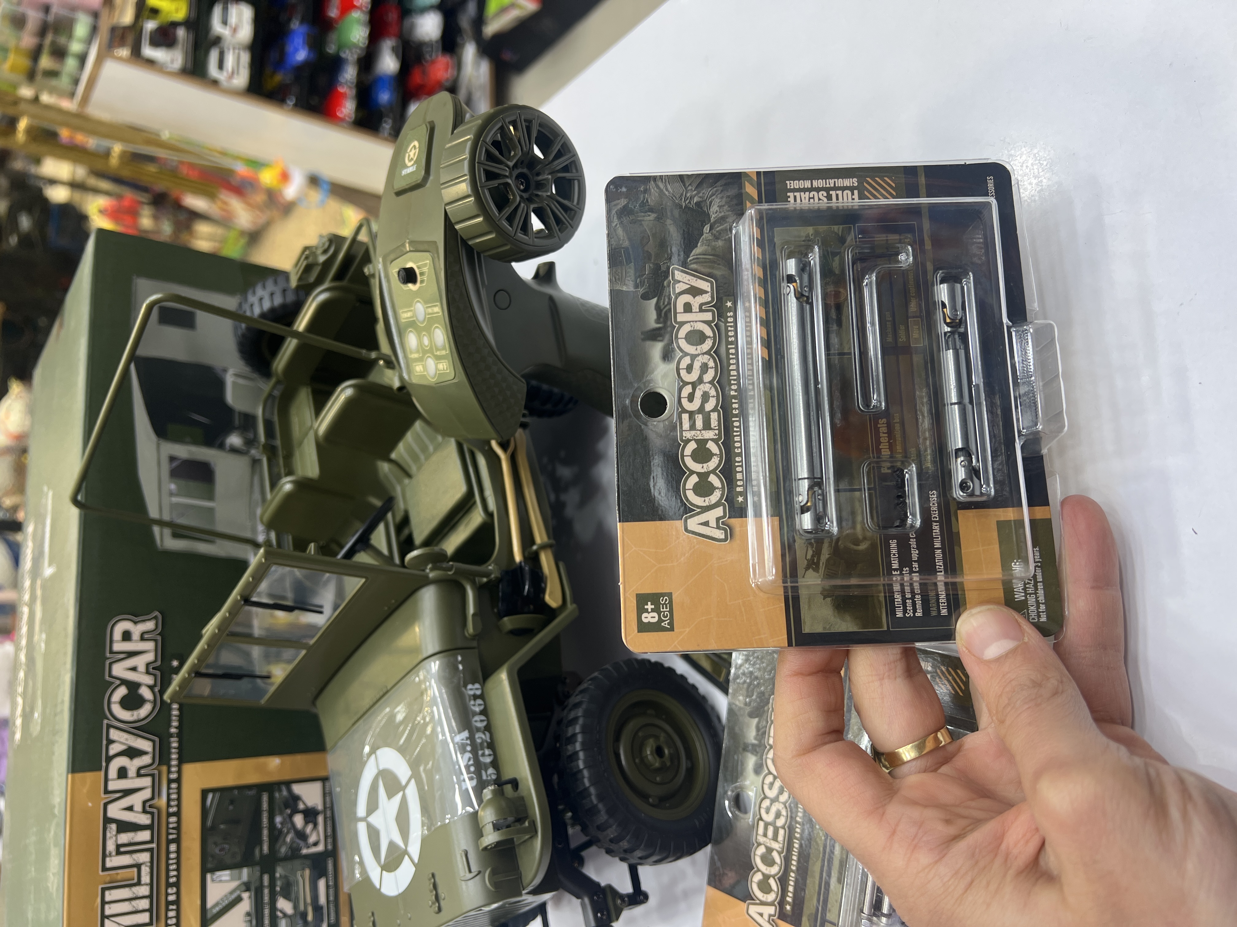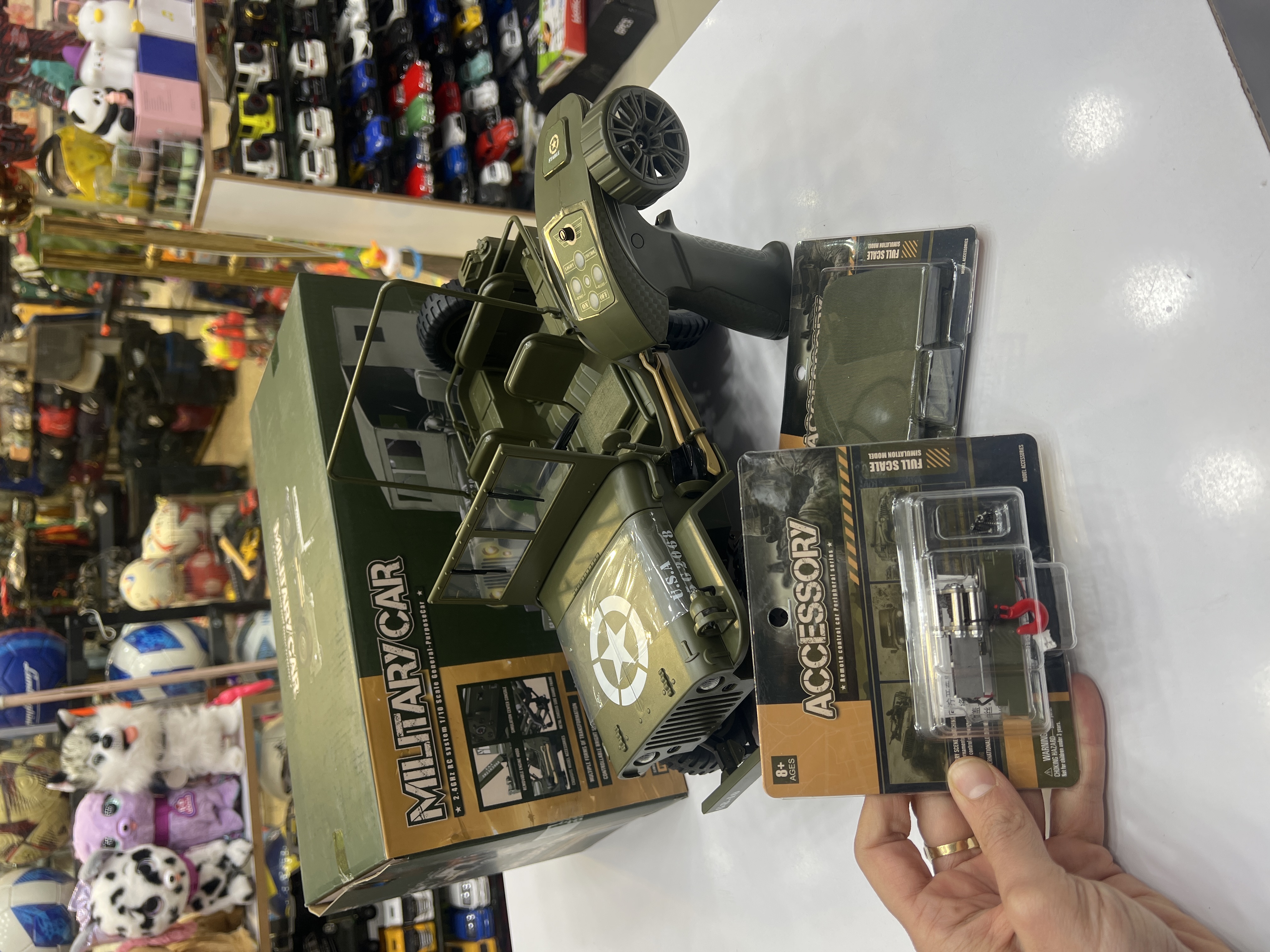 جیپ ویلیز  کنترلی اسکل ۱/۱۰ باطری دوصل وینچ فلزی کار میکنه ستون ماشین و گاردن فلزی لاستیک های گوشتی نرم شیب ۴۵ درجه تریم لاستیک و کنترل۲/۴ بدون تداخل رادیویی چادر دارد پروژکتور داره لایت نوری …..